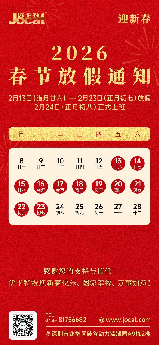 2026年1月13日(臘月廿六)至2026年2月23日(正月初七)為放假時間,2月24日(正月初八)正式上班。